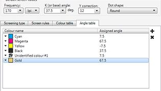 Custom Angles - Angles can be fully customized via the angle editor, allowing custom angles to be set. Specific Spot colors can be assigned their own angles or spot colors can be dynamically assigned angles which will not clash.